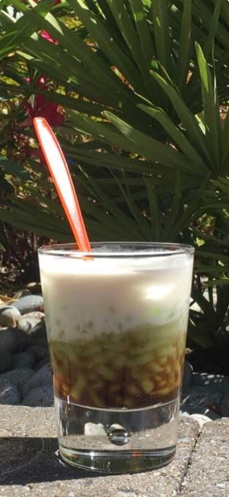 Koud, zoet met kokosmelk, palmsuiker en rijstgelei